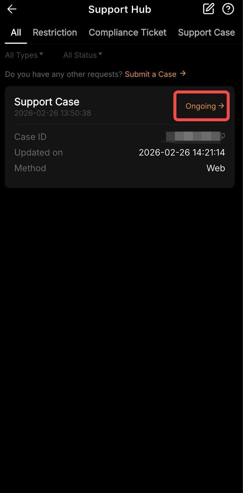 После отправки обращения в службу поддержки вы можете использовать Центр поддержки Bybit для отслеживания его статуса в режиме реального времени, не полагаясь исключительно на уведомления по электронной почте. На этой централизованной панели отображаются все ваши открытые обращения и их обновления, а также предоставляется возможность напрямую взаимодействовать с нашей службой поддержки.