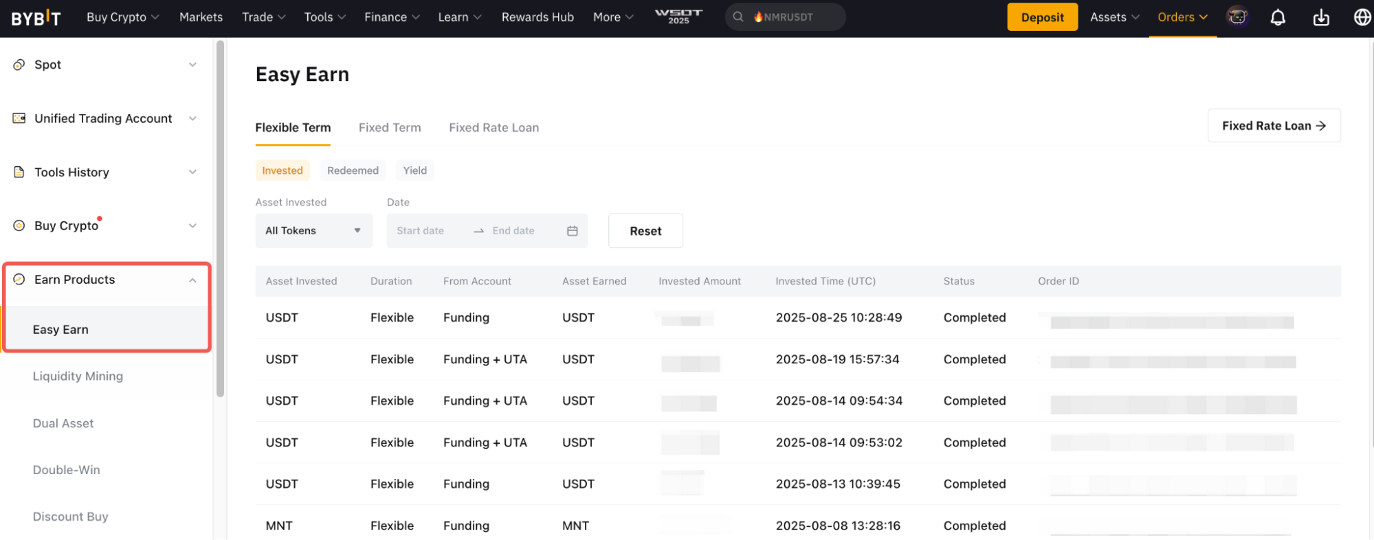 Кроме того, вы можете найти свои ордера в разделе Earn ордер Easy Earn.
