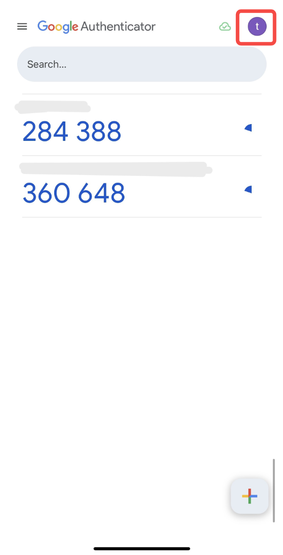 Шаг 1. Запустите приложение Google Authenticator на своем устройстве. Нажмите на значок профиля, расположенный в правом верхнем углу страницы Google Authenticator.