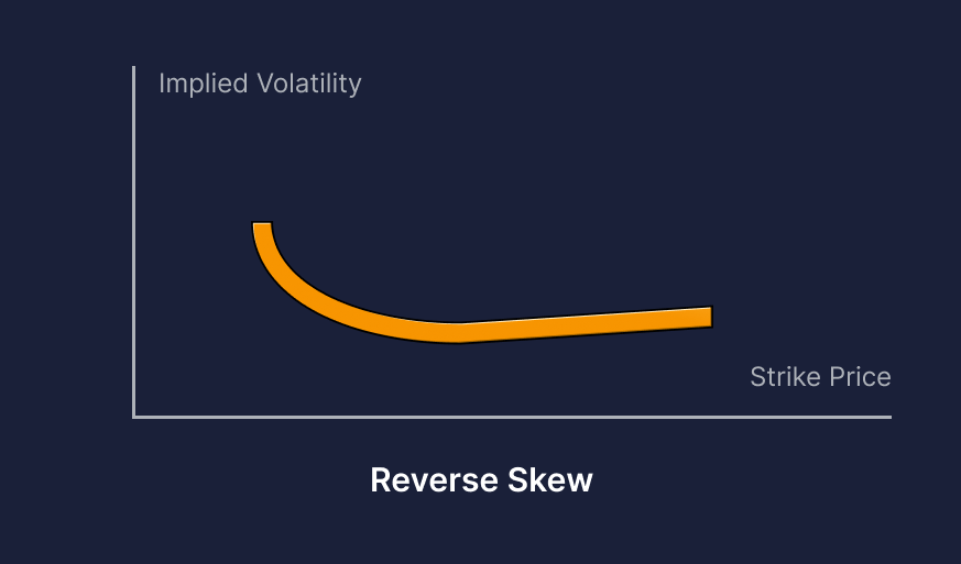 Обратная кривая. Обратная кривая возникает при росте подразумеваемой волатильности на более низких ценах исполнения опционов.