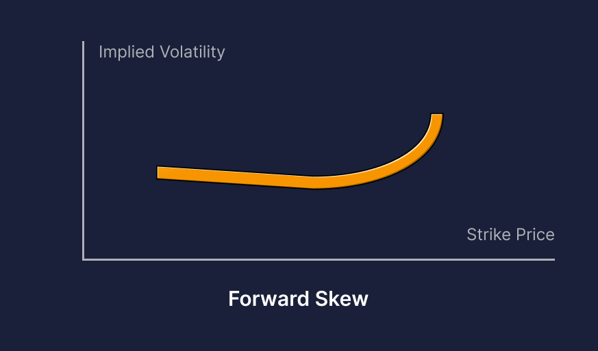 По графику подразумеваемой волатильности можно легко определить тип и степень наклона кривой.