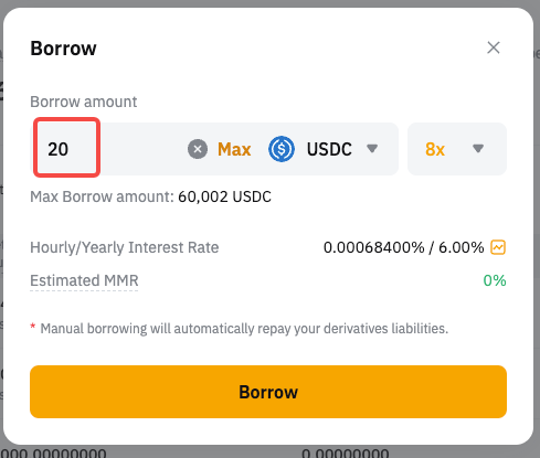 Step 2: Enter the amount and click Borrow to confirm.
