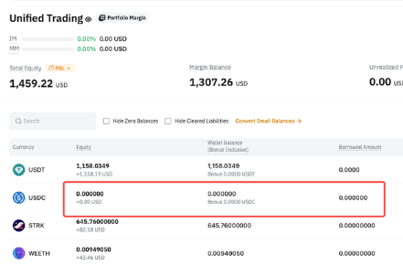 • USDC wallet balance = 0