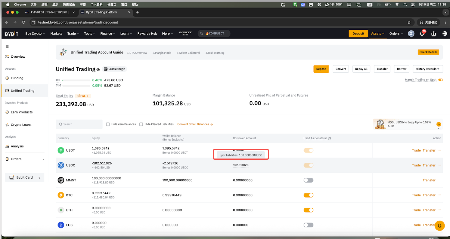 For example, if you borrowed BTC but don't currently hold any, buying BTC with USDT via the BTC/USDT Spot pair will automatically count as a repayment. The BTC you receive is treated as if it were transferred into your Unified Trading Account.