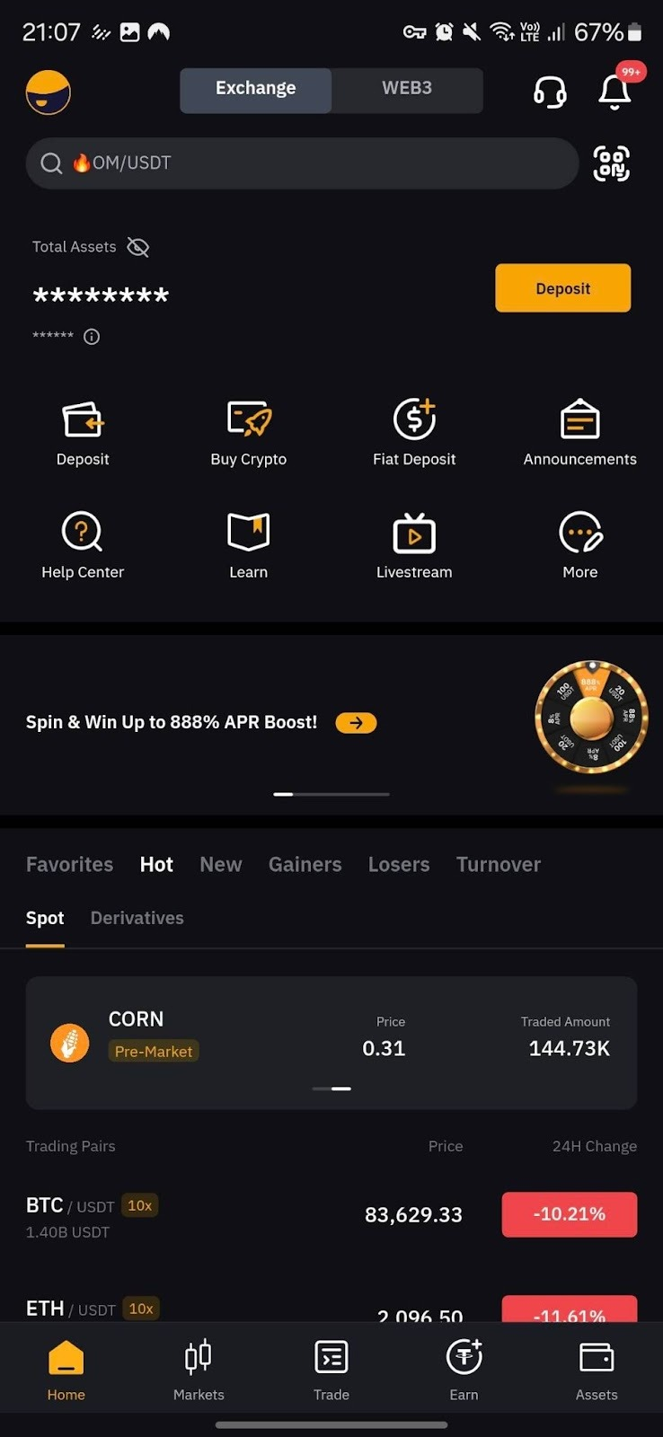 • 儲值:如果您的帳戶目前未持有任何加密資產,您可以直接存入資金。
